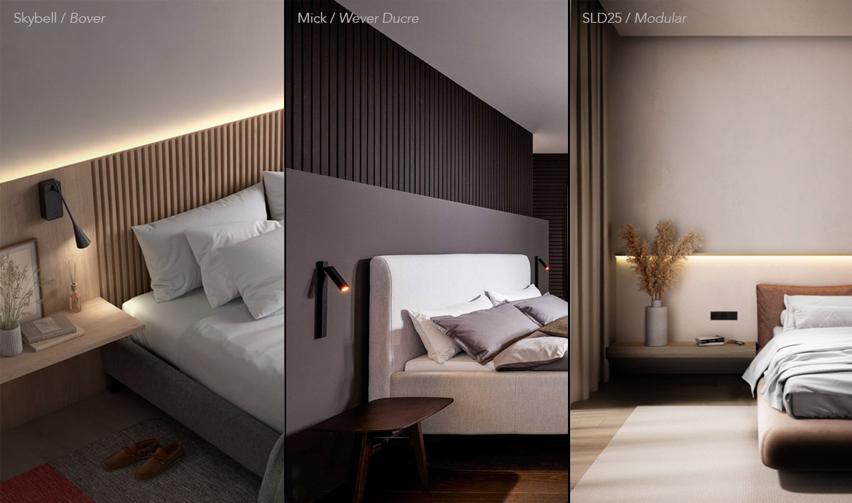 Poskrbite za razsvetljavo, ki bo ustrezala različnim funkcijam v spalnici – sproščanje, branje, izbiranje oblačil … Pomembna je dobra osnovna razsvetljava. Zagotovite več električnih vtičnic. Prepričajte se, da lahko luči ugasnete in po možnosti zatemnite tako pri vratih kot ob postelji. Za branje je najboljša usmerjena osvetlitev ob obeh straneh postelje. Odločite se lahko za stensko ali visečo svetilko oziroma za svetilko na nočni omarici. Tudi za to razsvetljavo izberite možnost zatemnitve. Osvetljenost spalnice naj bo med 60 luxi in 200 luxi. Posredna stenska razsvetljava za posteljo ustvari občutek topline v sobi.💡